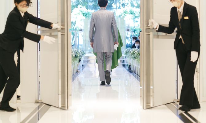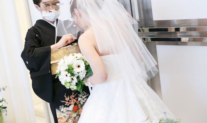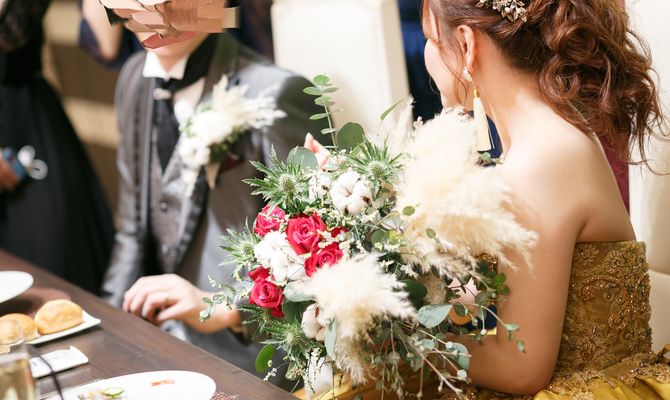 【ゲストと近い距離で楽しめる結婚式!】をコンセプトにしました。コロナの影響で招待人数を少なくしたこともあり、テーブルラウンドなどを無しにした分、ゲストが高砂に来てたくさんおしゃべりしたり、写真を撮ったりできる時間をメインにしました。