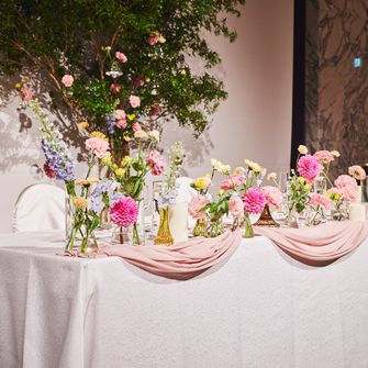 ホテルウェディングならではのラグジュアリーかつ非日常な空間を活かしつつも、肩肘を張らず笑顔で過ごせるような明るく春らしい軽やかな多幸感を意識した空間作りをイメージしました。