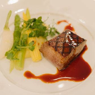 披露宴ではゲスト参加型の演出を重視し、お魚を使った格付けチェックに加え、夫の姉夫婦によるお手本バイトや、私の弟とシェフによるお肉のフランベなどを取り入れています。