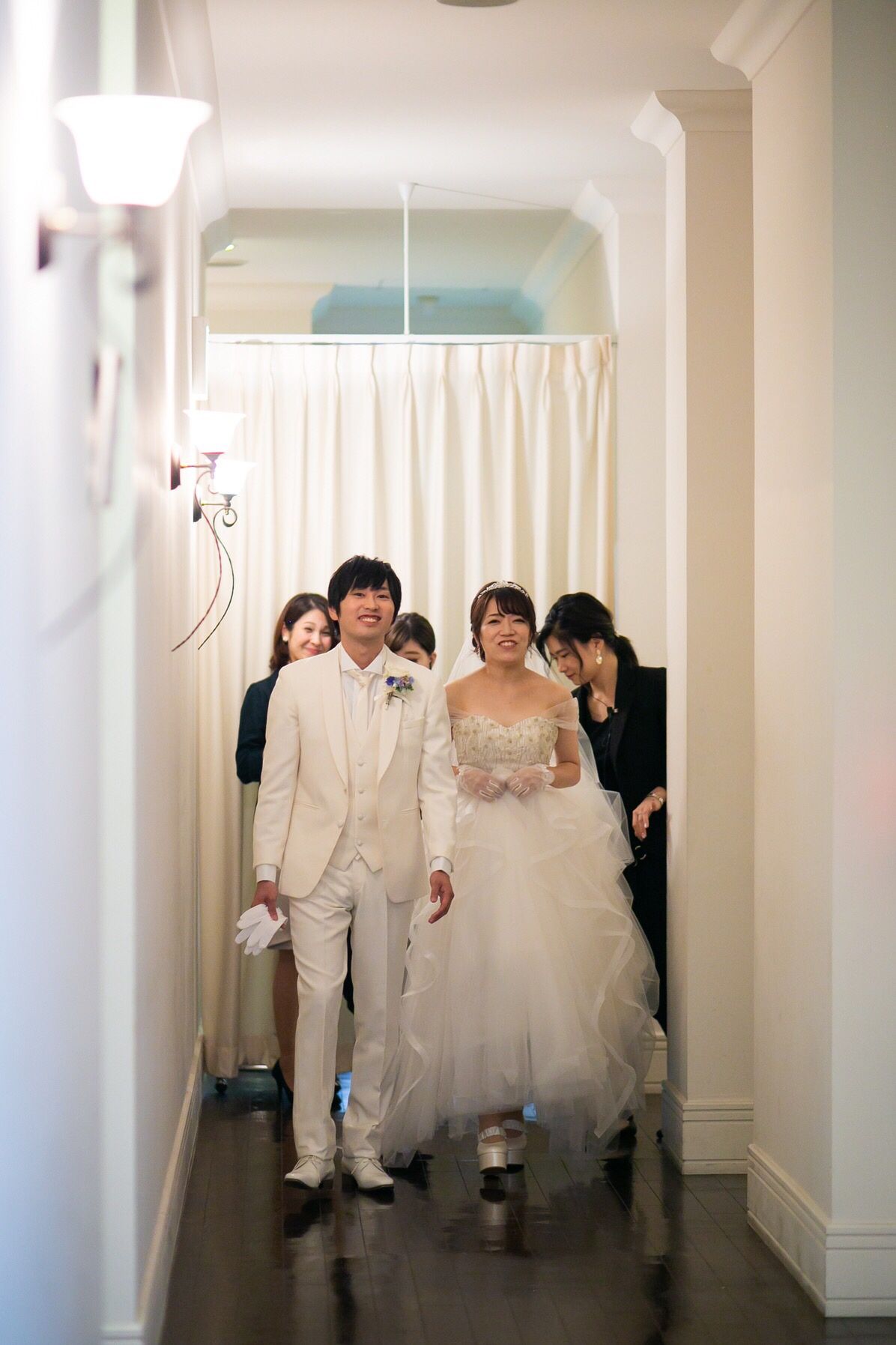 チャペルの扉があいた瞬間です。緊張もあったかもしれませんが、ゲストの方全員と初めて対面したその時が、当日の中で一番泣きそうになった瞬間でした。
