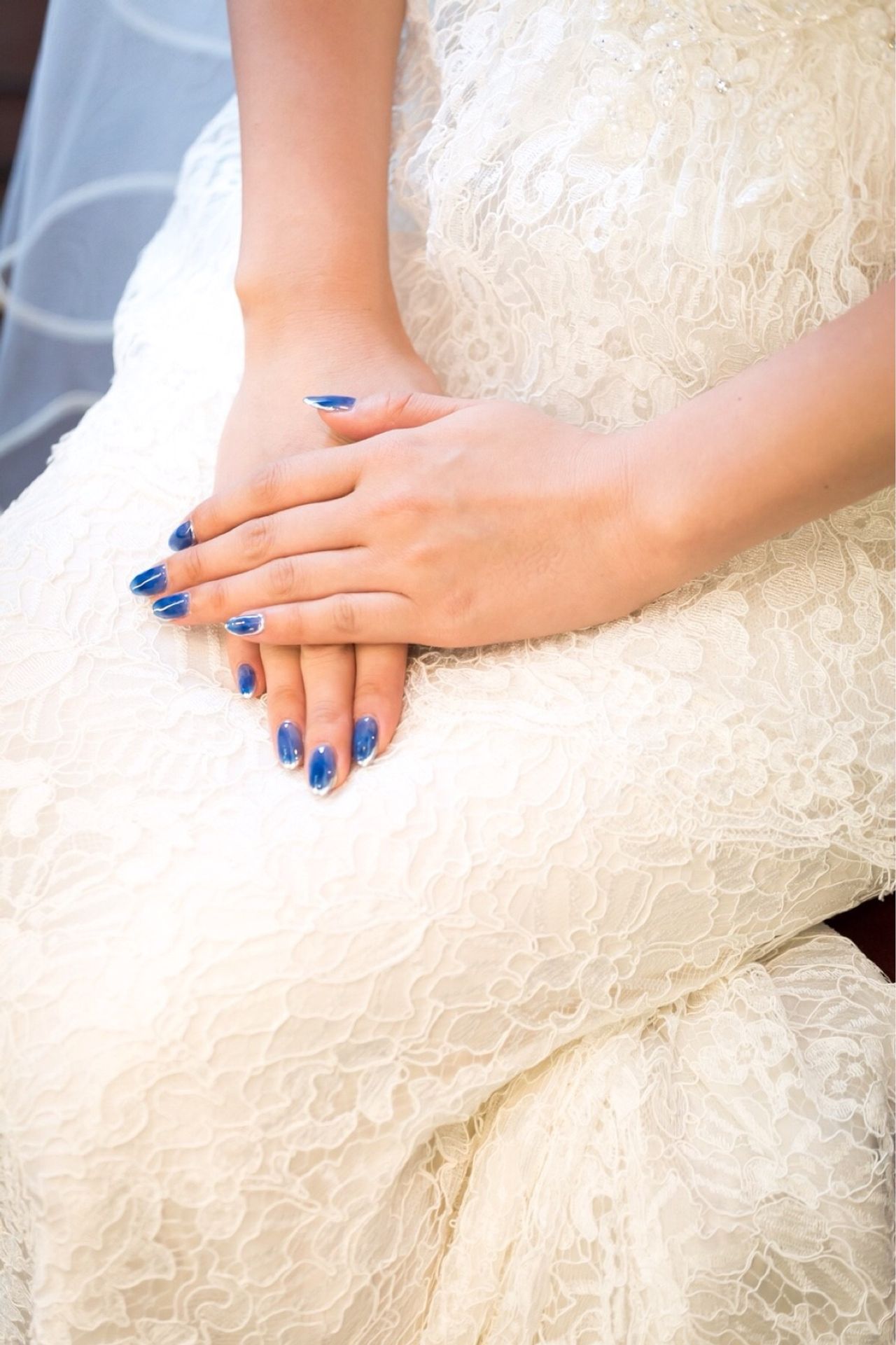 白やピンク、パールやストーンを基調とした、いわゆるブライダルネイルといわれるデザインを敢えて避けました!