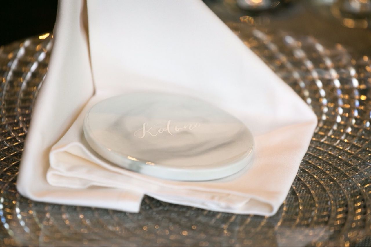 席札としても使用した大理石のネームプレート。