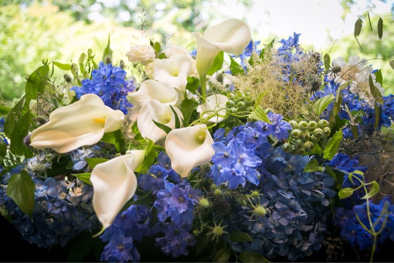 ブルーをメインで青々しく、白い紫陽花で爽やかなイメージにしてもらいました。