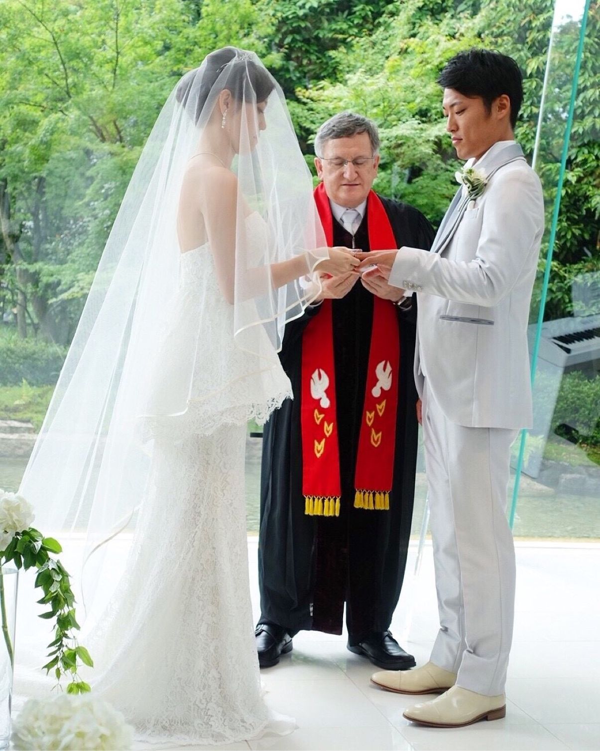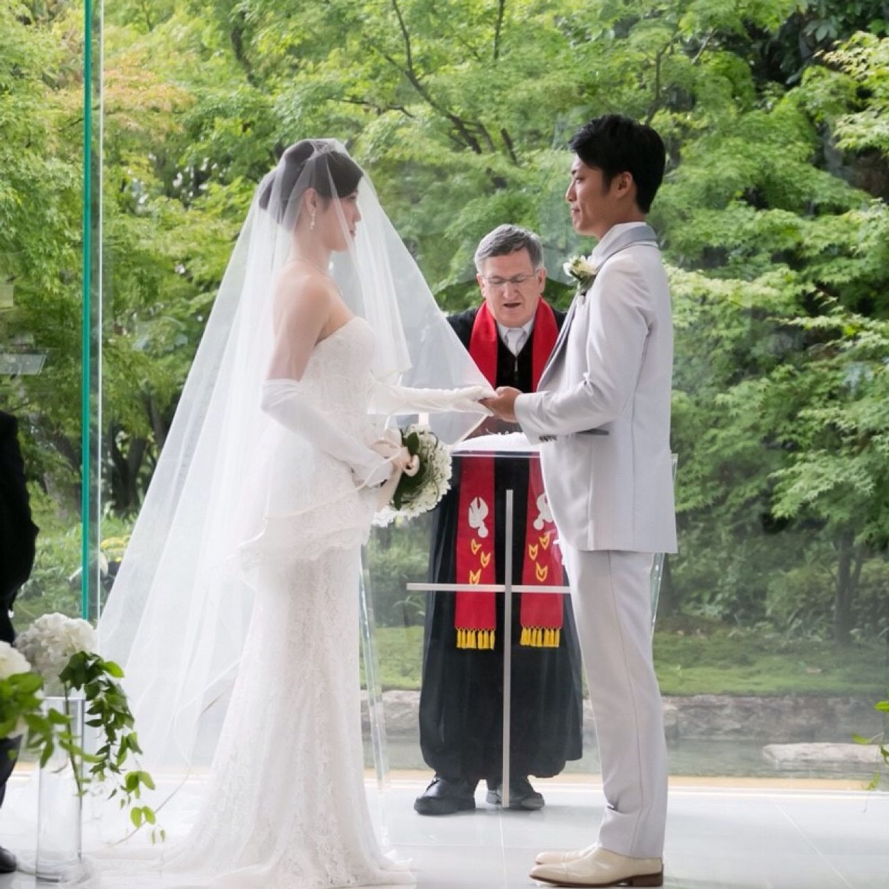 日本庭園の中にあるガラス張りのチャペルなので、自然の中で挙式を行なっているような式が挙げられます!