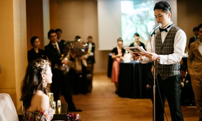 夜の部は友人のみだったので、私たちはもちろん、ゲストにもカジュアルに思いっきり頼んしでもらいたいと服装は自由に!と予め招待状で記載しました☺️海外からのゲストも多かったので、司会者もバイリンガルの方にして、昼とは全く違う雰囲気になるようにしました。