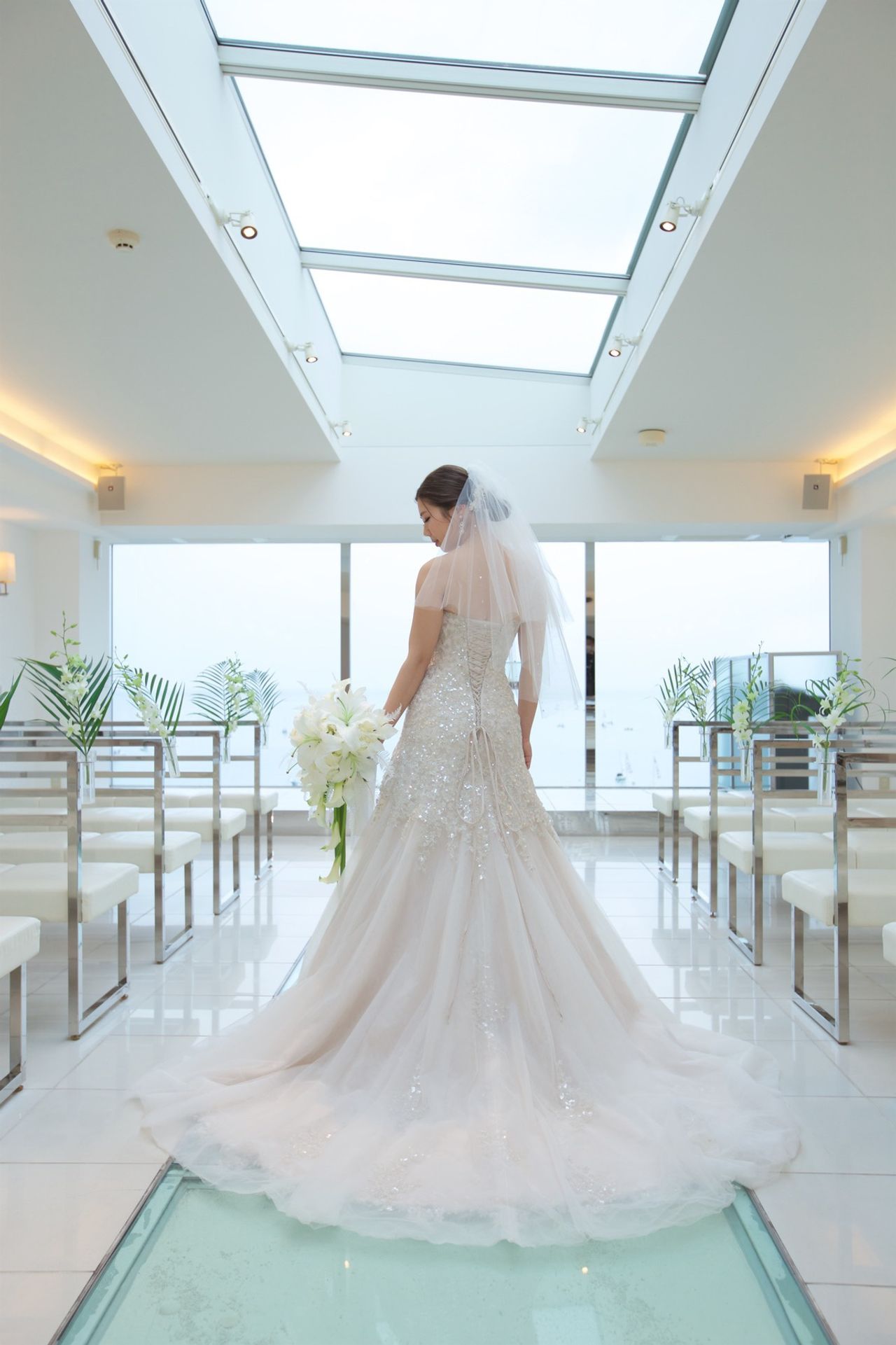 バージンロードはガラスで中には