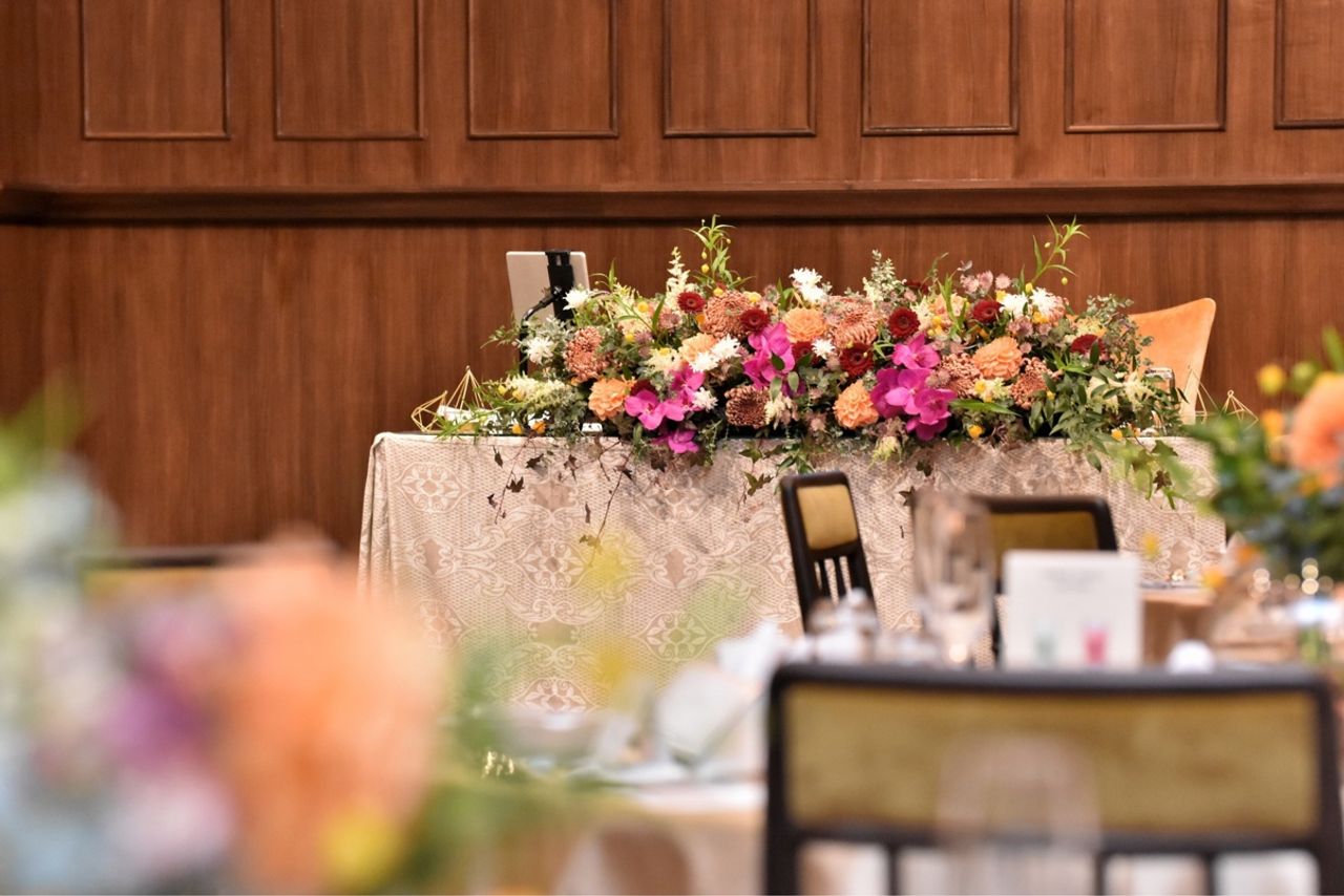 カラフルな色味が好きなので華やかにしたかったですが、会場が落ち着いた雰囲気だったのでできるだけ落ち着いた色味を使用しながらカラフルに仕上げていただきました。差し色のイエローとグリーンが気に入っています。