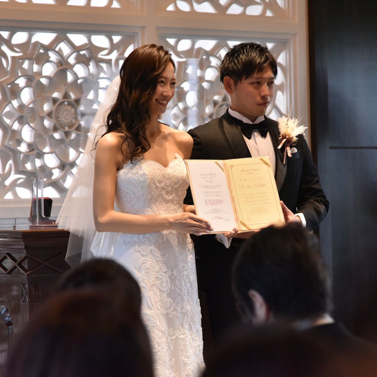 式前日にコロナへの不安による欠席者が相次ぎ、席次表の変更などの作業に追われてあまり寝ずに当日を迎えました。始まる前まで多くの問題や悩みもでてくるかと思いますが、挙式からは気持ちをすべて切り替えて思い切り楽しむことが一番かなと思います!