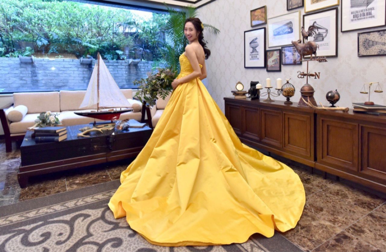 黄色という可愛い色でありながら、サテン生地の少し大人っぽい黄色だったところがいいなと思いました。またサイズ感がちょうどよく、何も不安のない安心感のあるドレスでした。