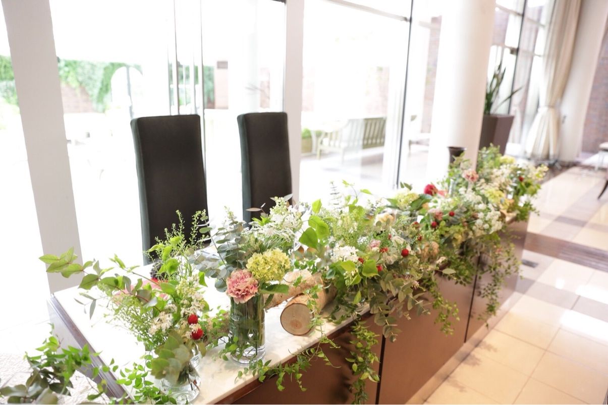 みどり多めでナチュラルに。担当してくださったフローリストさんがセンスがよかったのでほぼおまかせです。