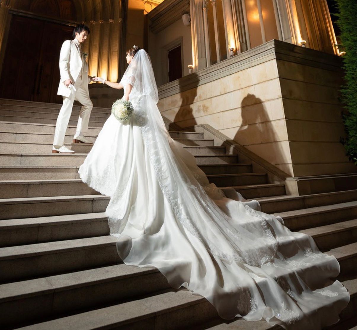 フラワーシャワーのとき、チャペルから私たちが出てきたときバックにステンドグラスがありそれが綺麗だったとみんなに言われました。