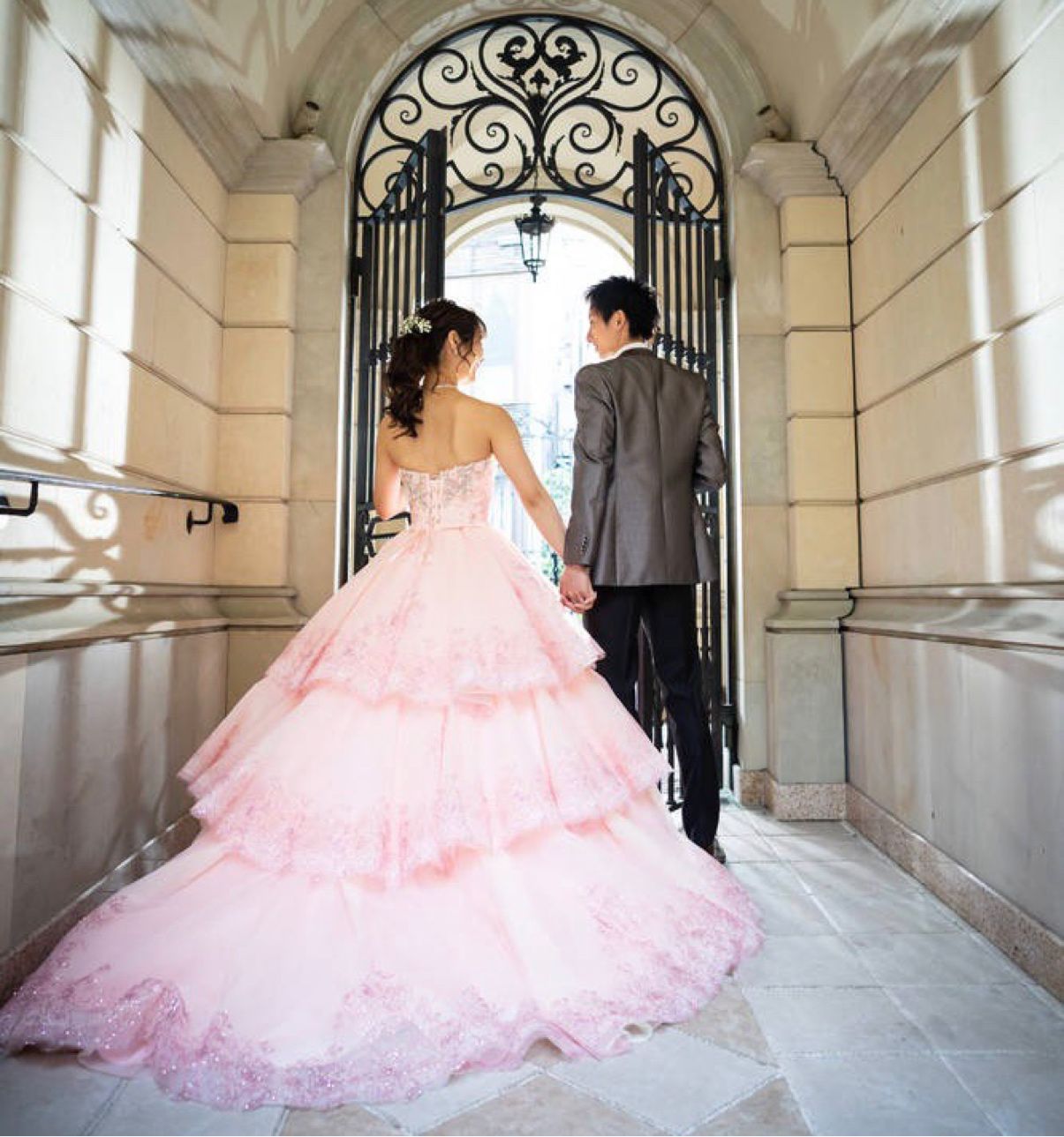 背中にリボンがついてるものが良く、後ろも長く綺麗だったのでこちらのドレスに決めました。