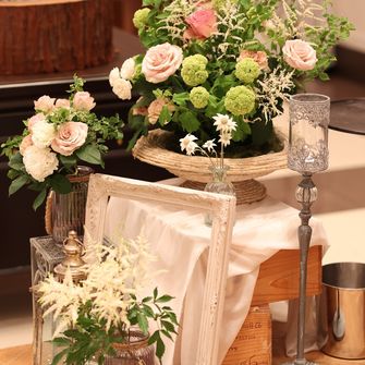 特にテーマは決めませんでしたが、大人可愛い結婚式を意識しました。落ち着いた色味のアイテムで揃えたり、装花は大人っぽさと可愛さのバランスを取ったりと、こだわりいっぱいの結婚式になりました。