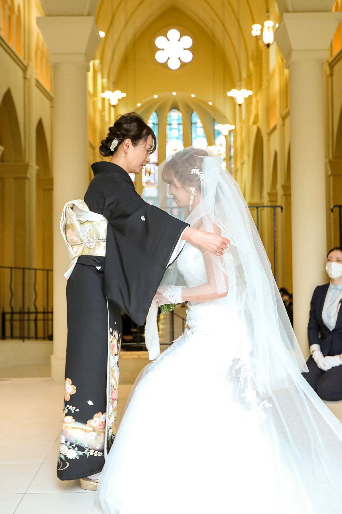 今まで大切に育ててくれた母にベールダウンをしてもらい、父と憧れだったバージンロードを歩いたことです。