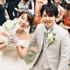 大事にしていたプログラムだったので、とても残念でしたが、挙式が終わって扉が開いたら雨が止んでいて、集合写真撮影もブーケトスもできました。そして披露宴がスタートしたら、また雨が降り出し、一瞬だけ神様がご褒美をくれたのが嬉しかったです。