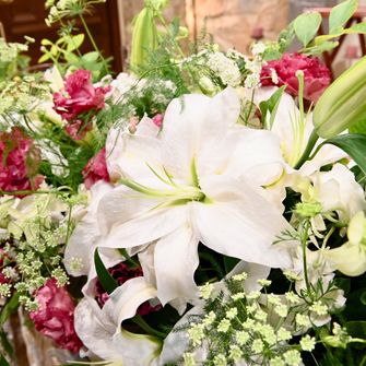 前職でブライダル業界に勤務していたこともあり、ひとつひとつの演出にこだわりがあったので、色々な演出やアイテムを持ち込みで行うことができる式場を選びました。また二人とも嵐のファンで、それがきっかけで知り合ったので、ほどよく嵐テイストを散りばめることにこだわりました!