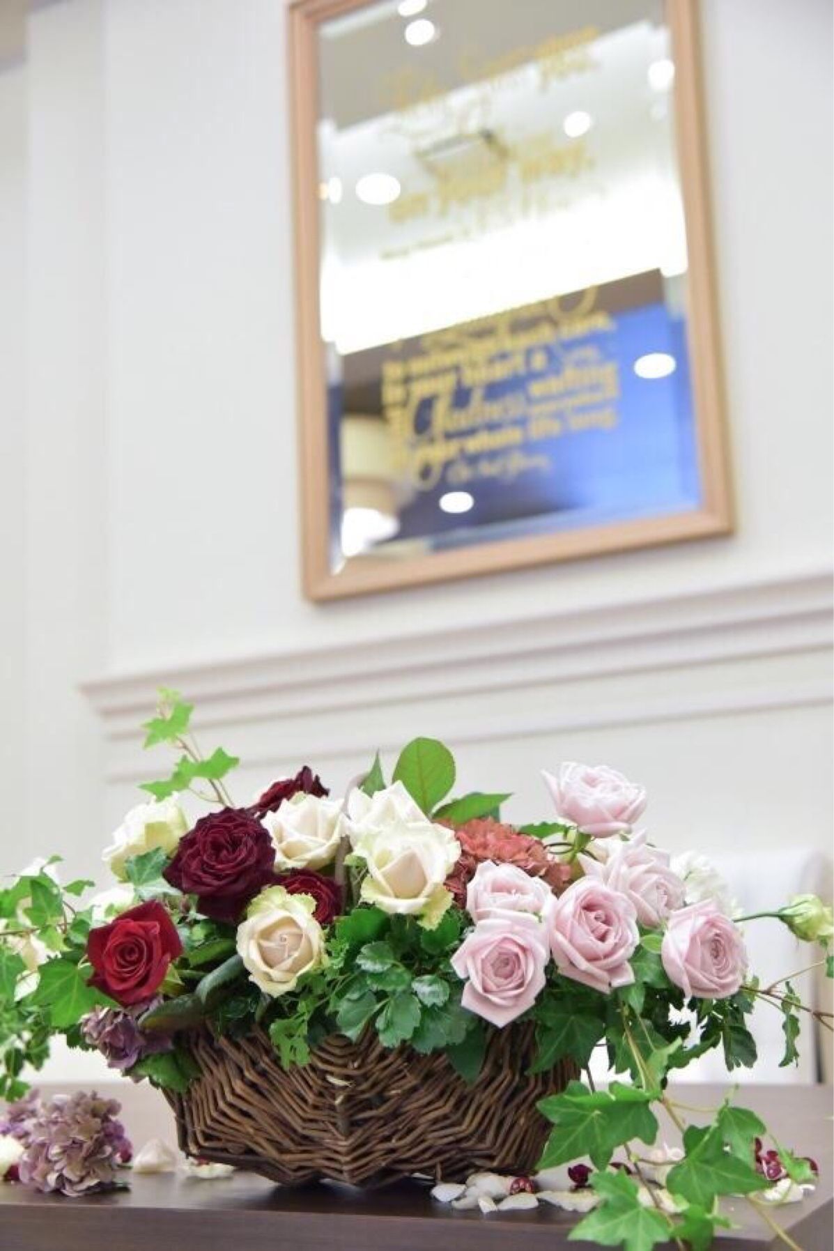新郎の希望で、絵画「権力の美学」をイメージしてシックな赤やピンクのお花でまとめました。