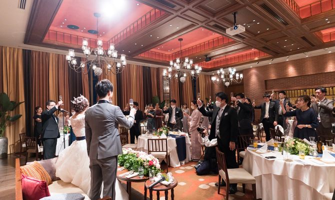 賑やかさがありながらも、ロイヤリティな雰囲気も出したいという希望があり、披露宴会場は横浜らしい赤レンガが使われたシャンデリアのある会場で、高級感のある披露宴になりました。