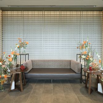 ゲストとの距離が近い結婚式をコンセプトに、高砂はテーブルではなくソファスタイルを選択しています。