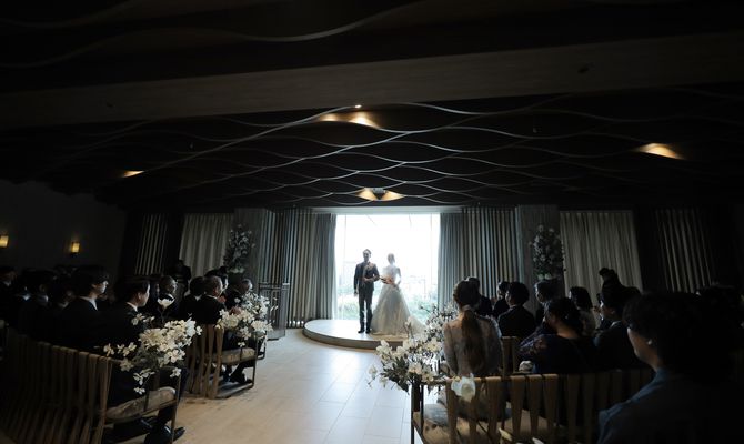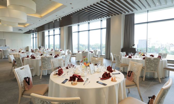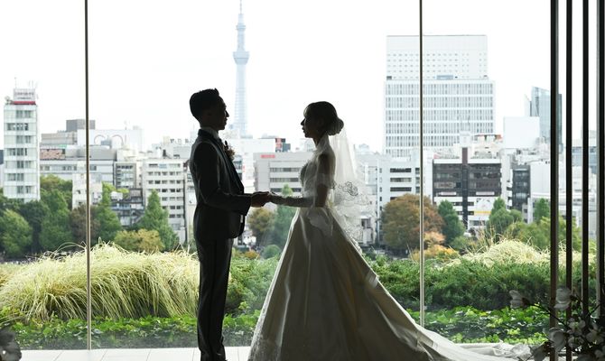 挙式会場、披露宴会場ともにガラス張りで、スカイツリーや上野公園を一望できます。