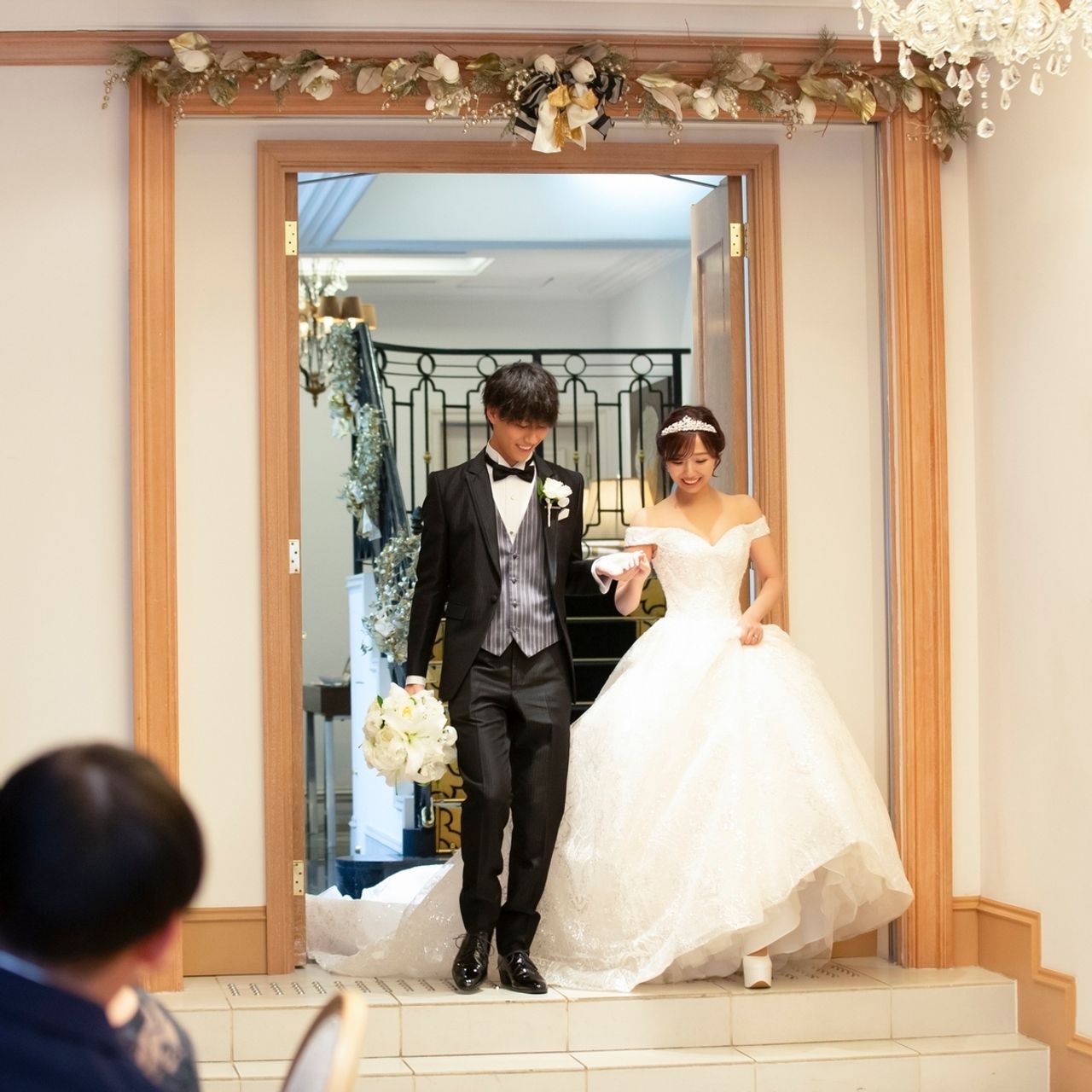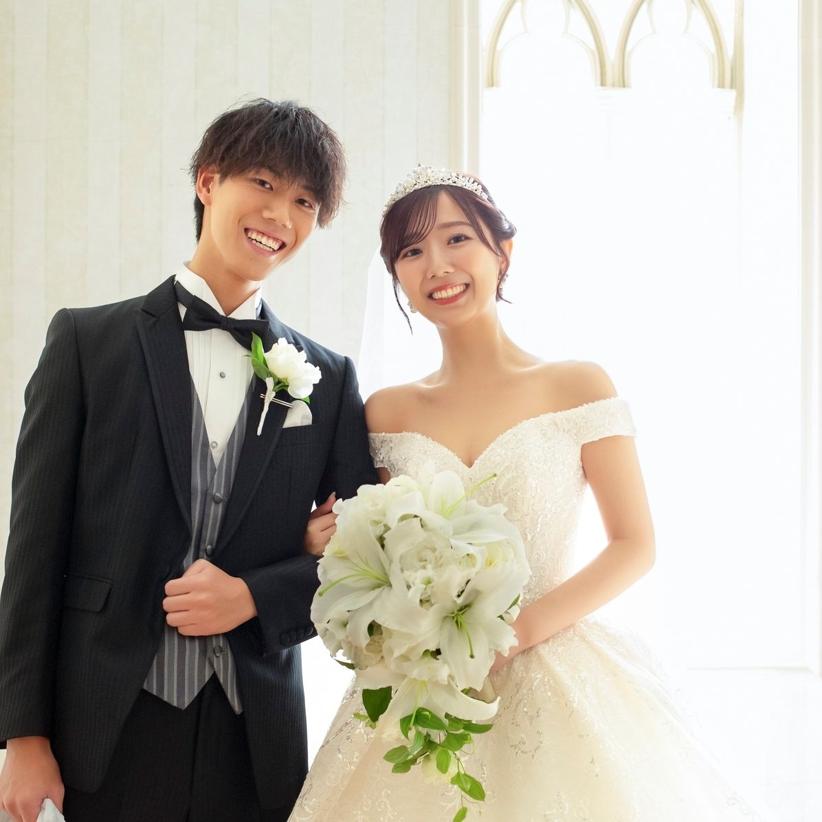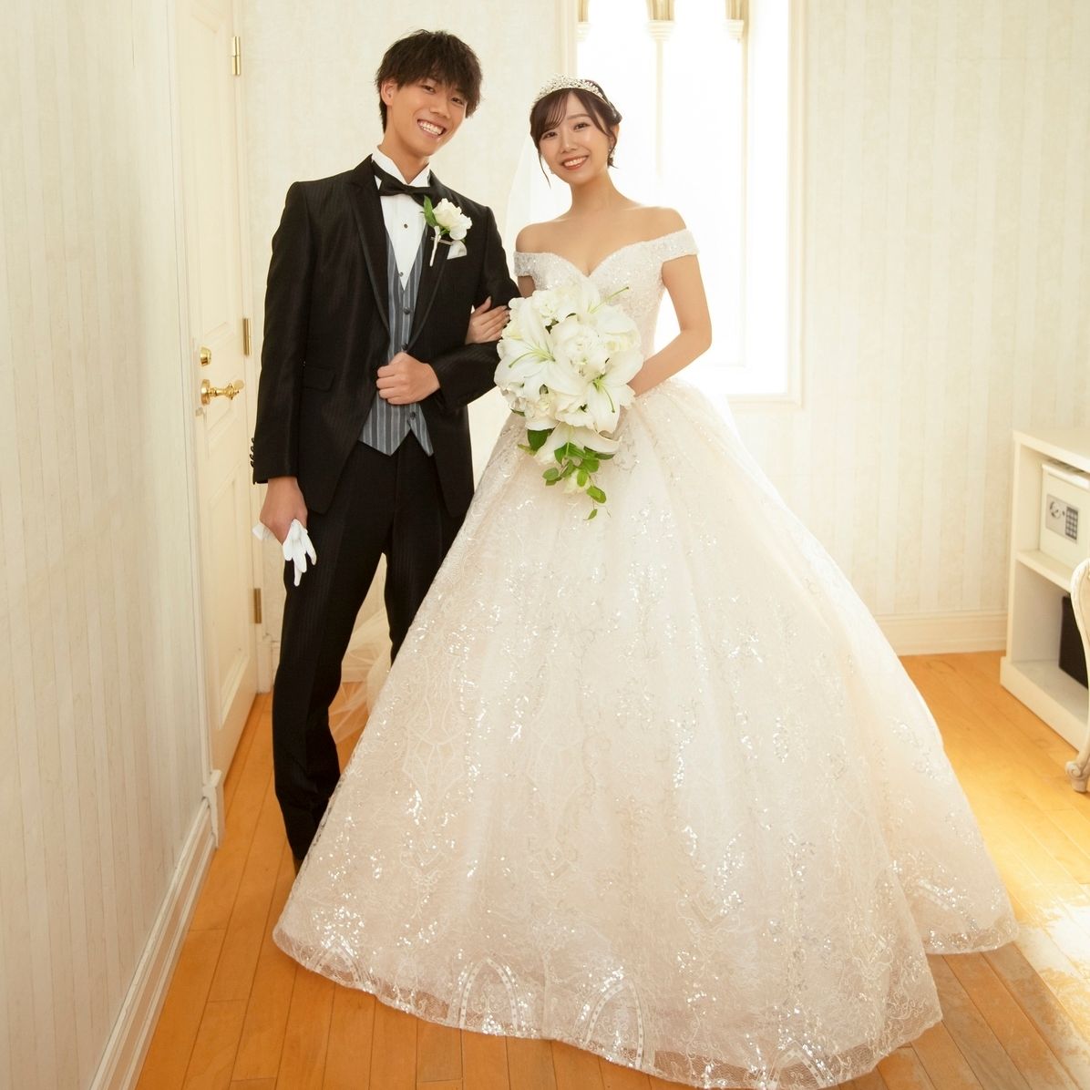 ウェディングドレスでは、王道のプリンセス感を出したかったため、ティアラにしました!