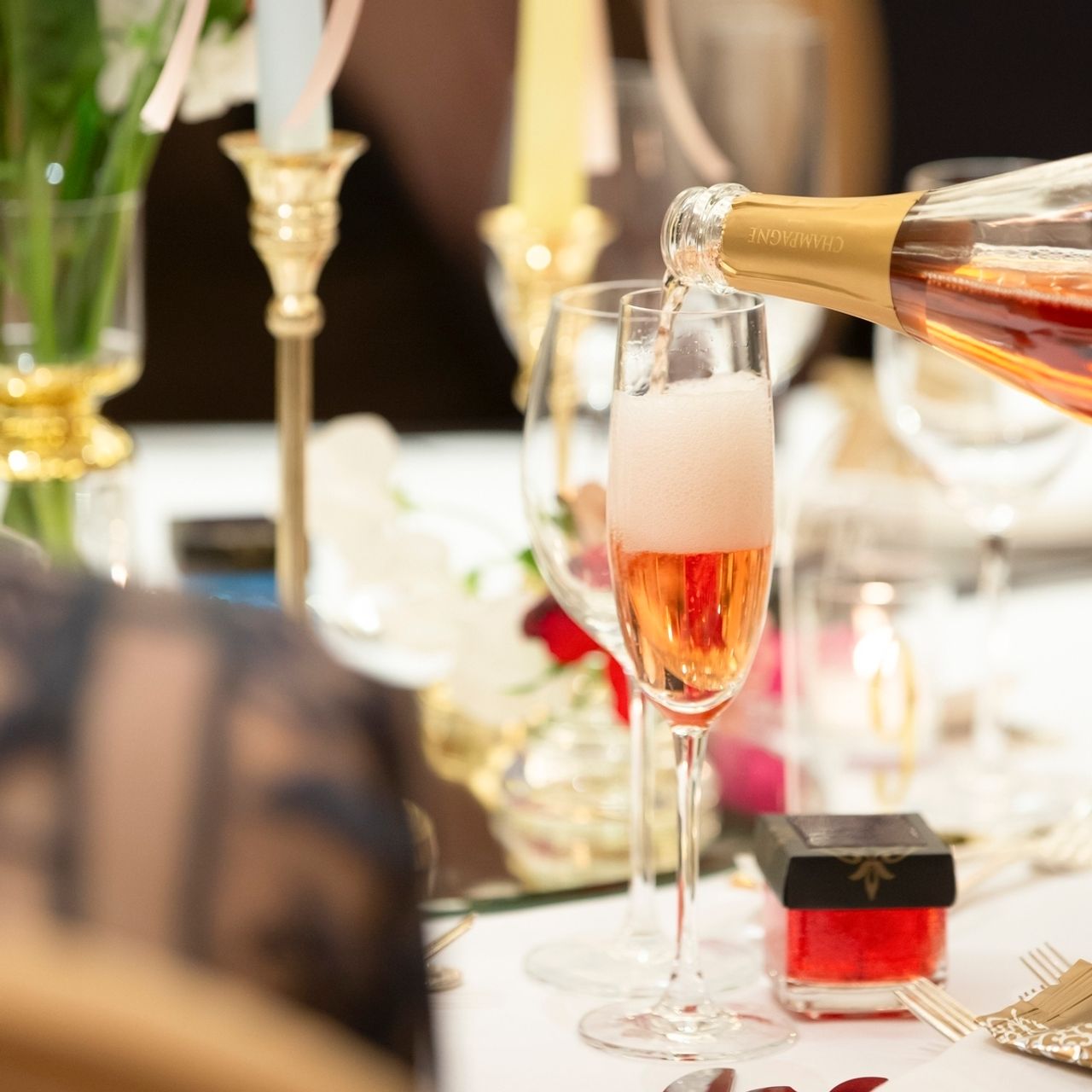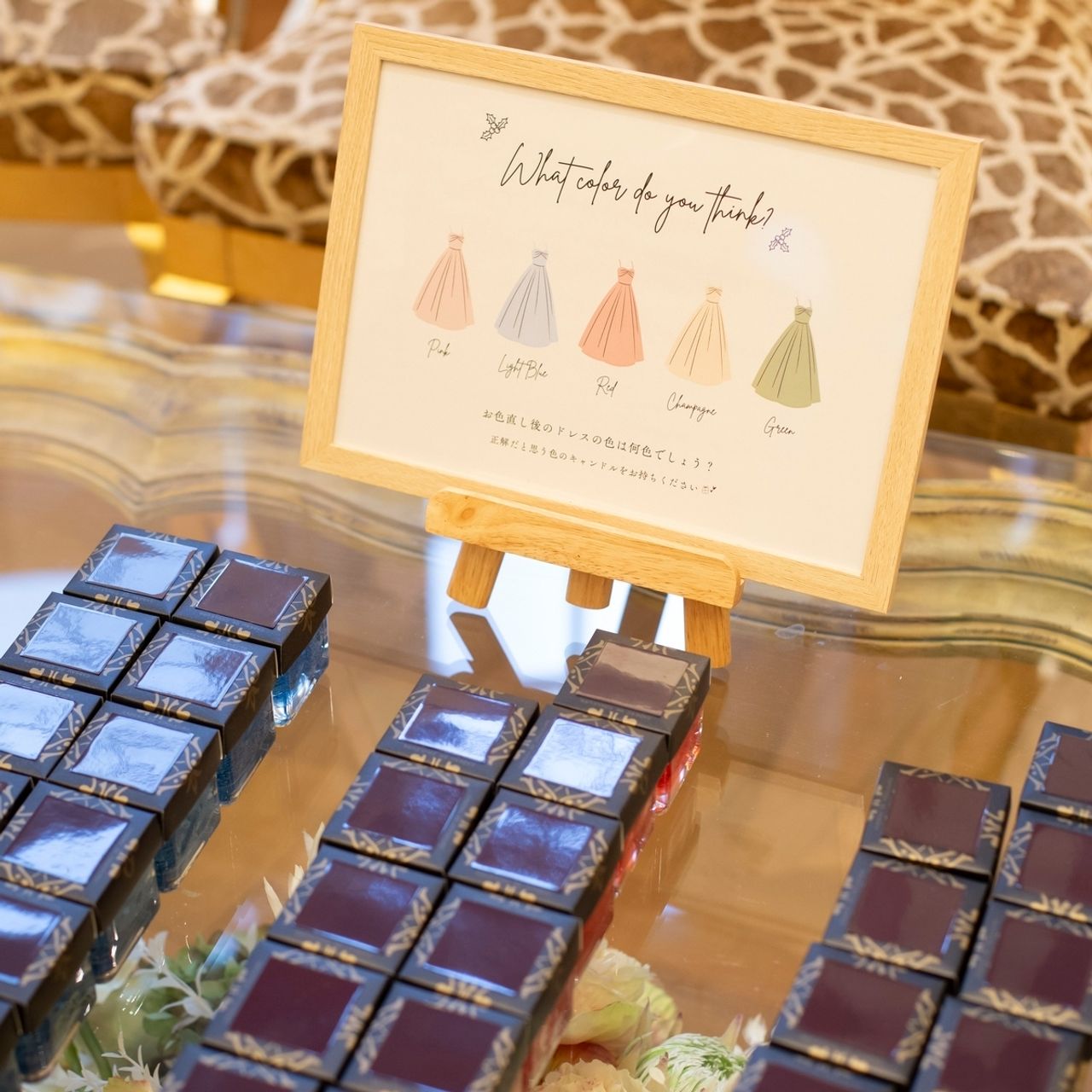 そして、冒頭でお伝えしたテーマを意識し、冬らしい演出として、クリスマスの曲を使用したり、キャンドルでのクレールストーリアや、オーナメント、パールを使った装飾をしました。