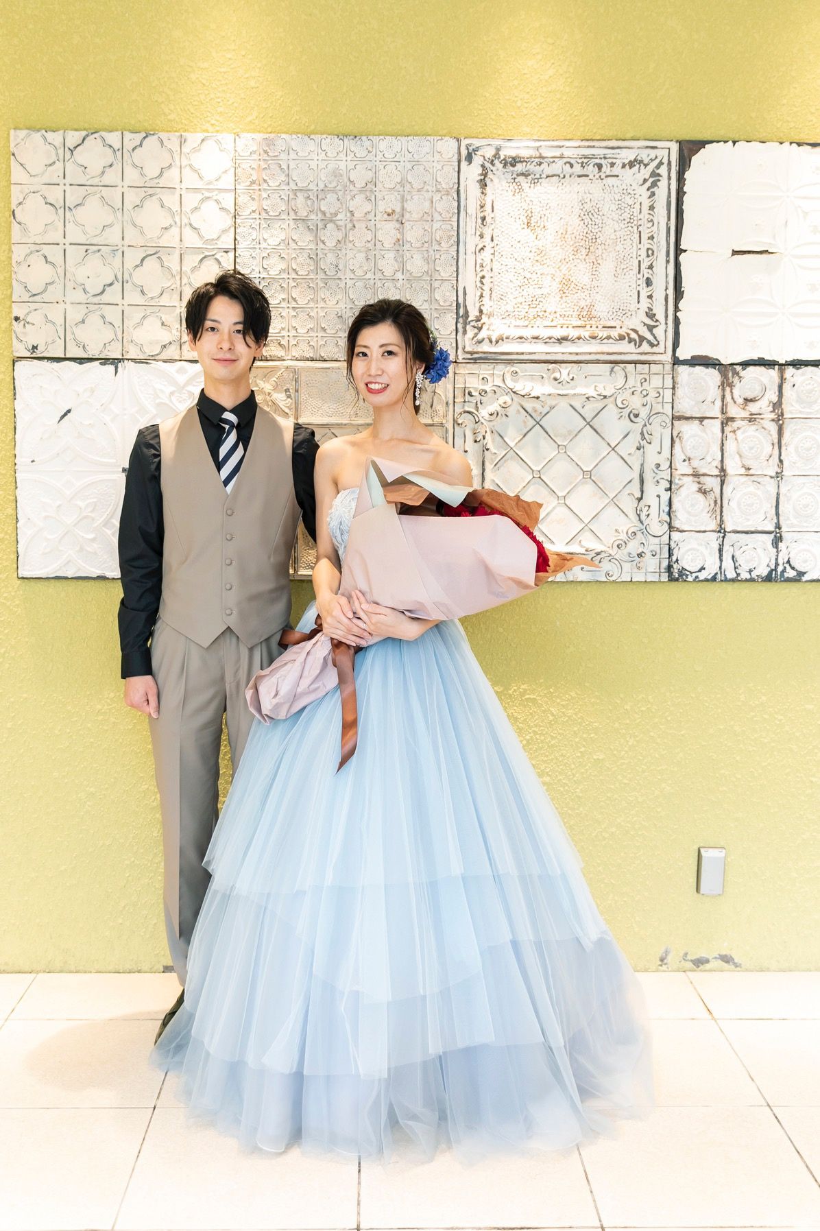 AULANOVA(式場の提携ドレスショップ)のライトブルーのドレスにしました。ウェディングドレスはストレートなデザインだったのでカラードレスはAラインのものを選びました。腰のレースアップリボンが可愛かったのと、胸元のデザインが良かったです。
