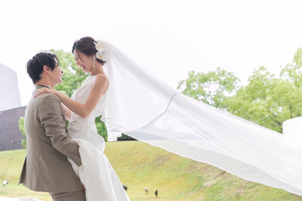 試着の時はそこまで動くことがないのでタオルだけでいけましたが、当日動き回ることを想定して対応できていれば良かったなと思いました。あとはベールの濃さがやや白味が強かったので、そこも確認して購入すればよかったです。
