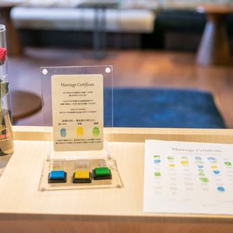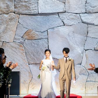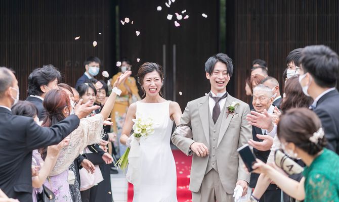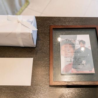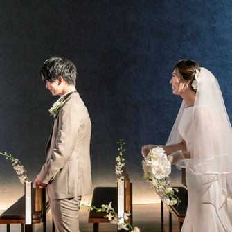「笑顔」が溢れ、なおかつそれを共有できる結婚式にしたいと思い、カジュアルでアットホームな感じを意識しました。ゲストとの距離感を近く感じられるように高砂はソファにしたり、ゲスト参加型の結婚誓約書を取り入れたり、両親から誓いの言葉をもらったりしました。私たちならではの結婚式になったと思います。