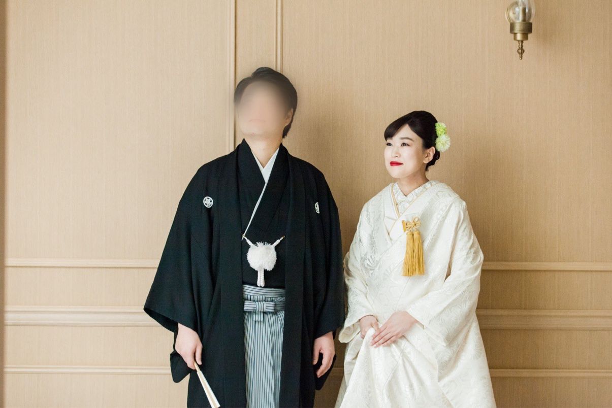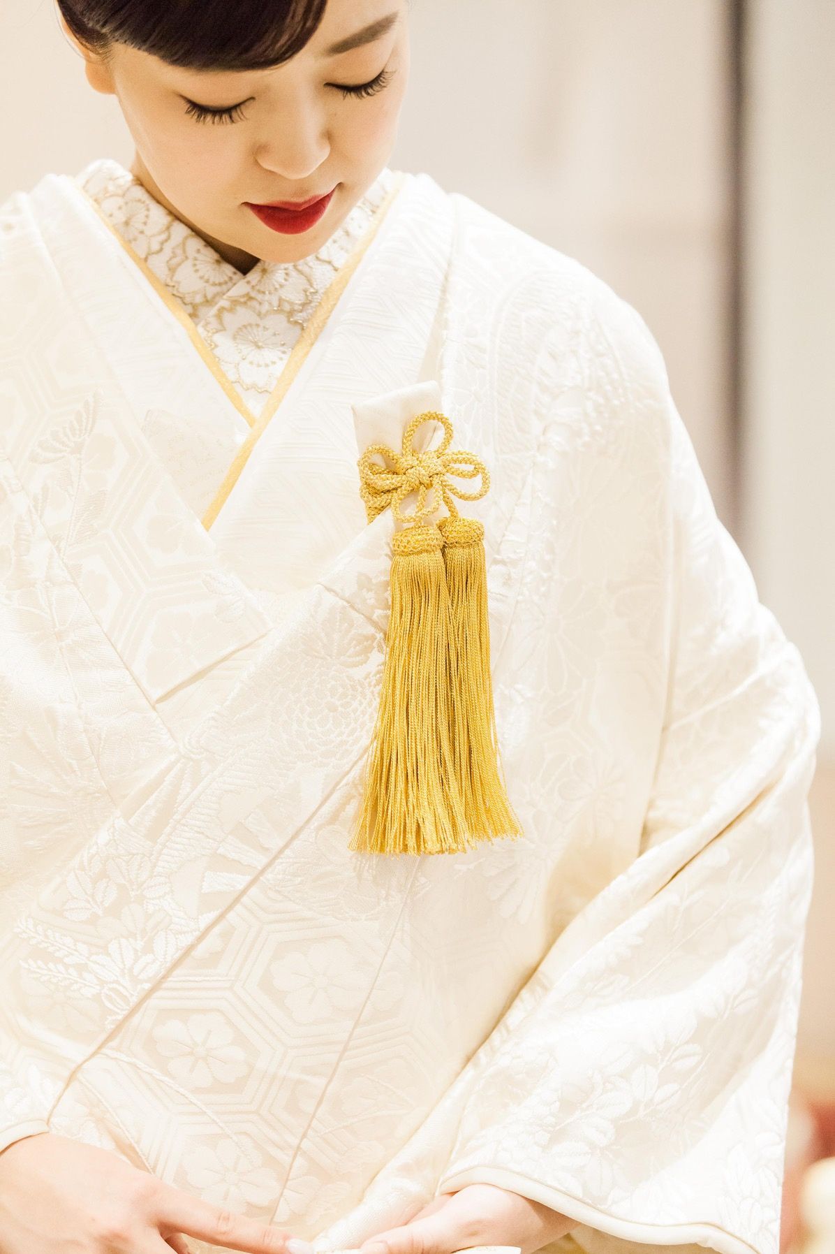 白無垢は小物をゴールドで統一しました。