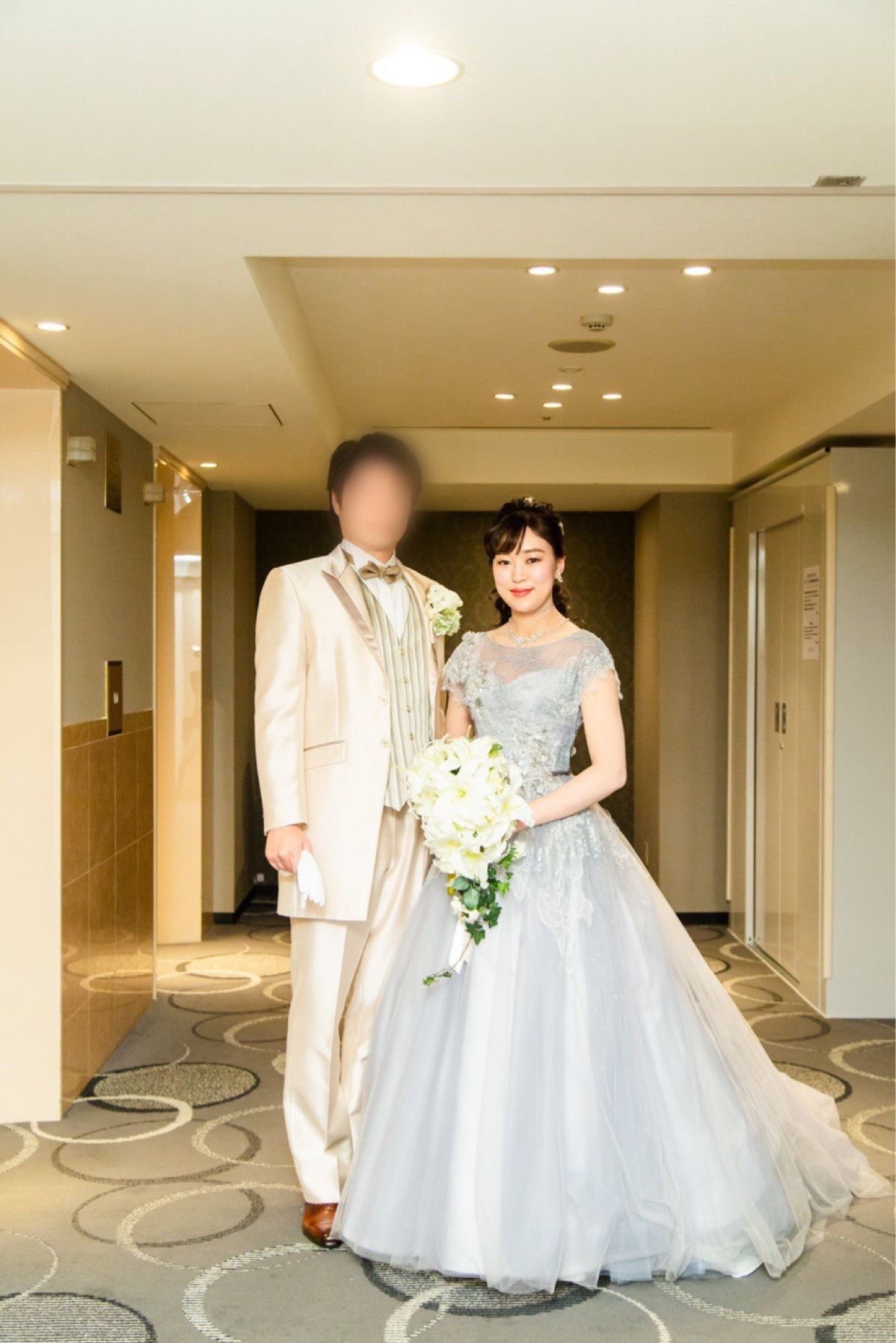 カラードレスは絶対にブルーグレーと決めていて、出していただきました。レースの上にあるシルバーの刺繍が上品で即決です。