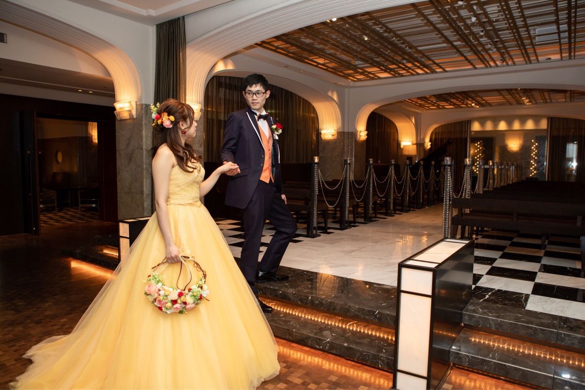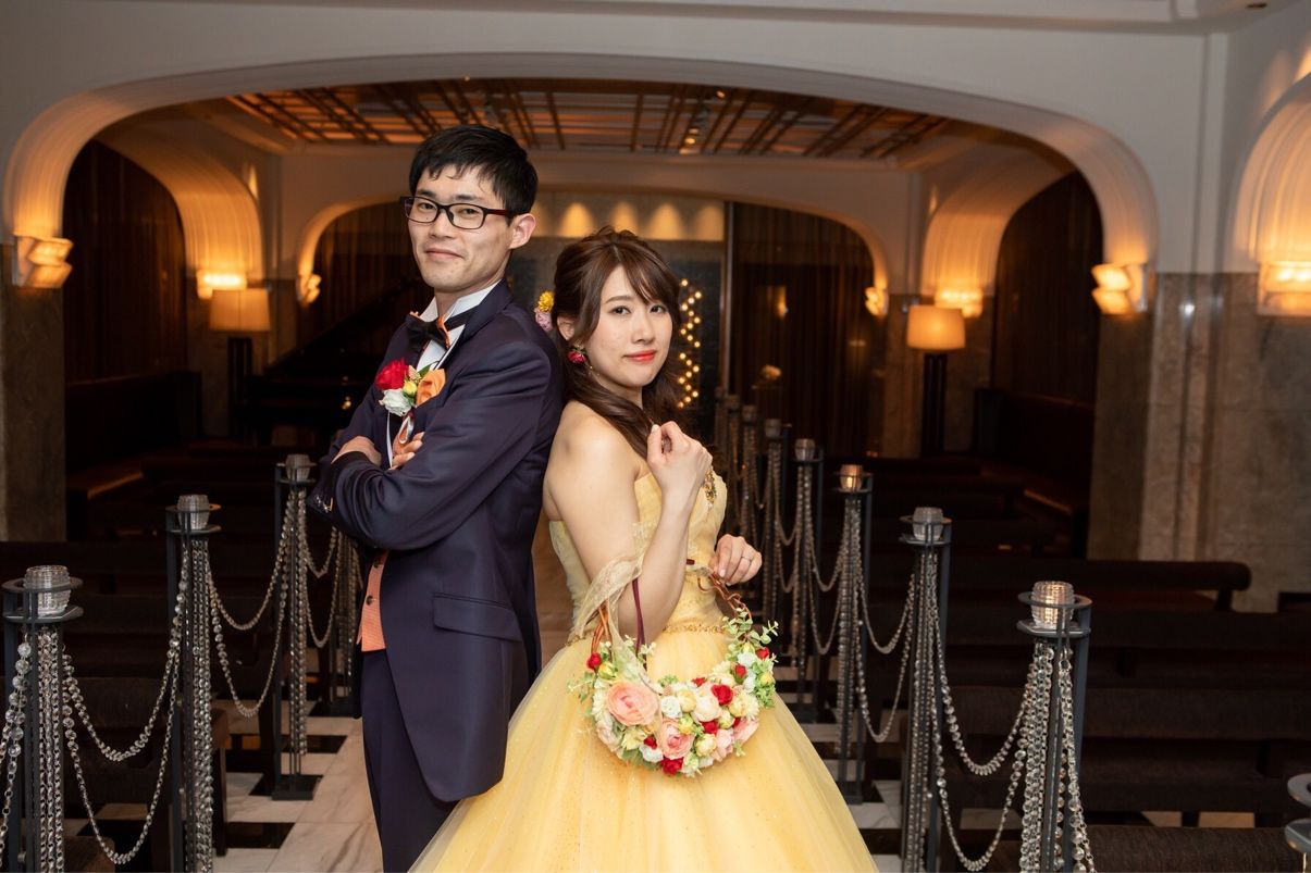 子どもの頃から美女と野獣のお話が大好きで、いつの頃からか結婚式でドレスを着るときには、ベルのように黄色の素敵なドレスを着ようと決めていました!