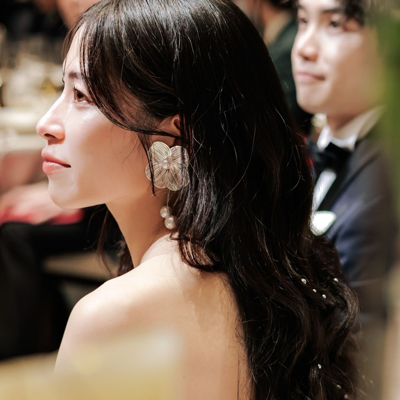 披露宴では大きな花が特徴のシルバーピアスを🪻🤍