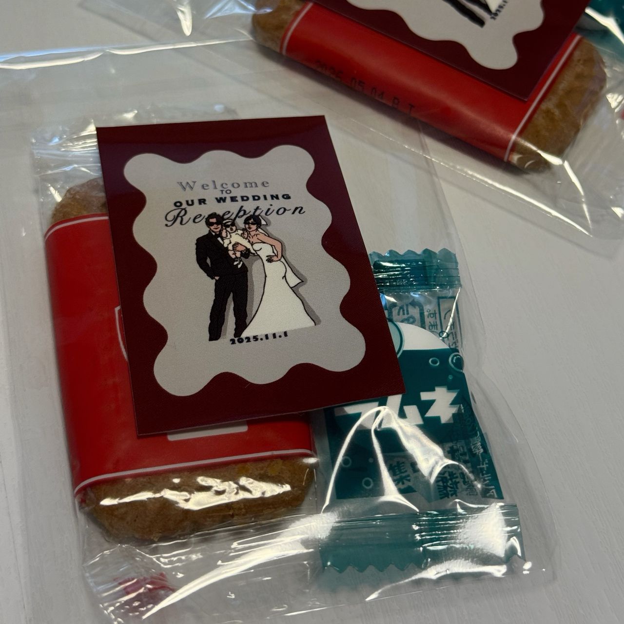オリジナルシールでデコレーションしたお菓子セットと、お水をチョイス🚿