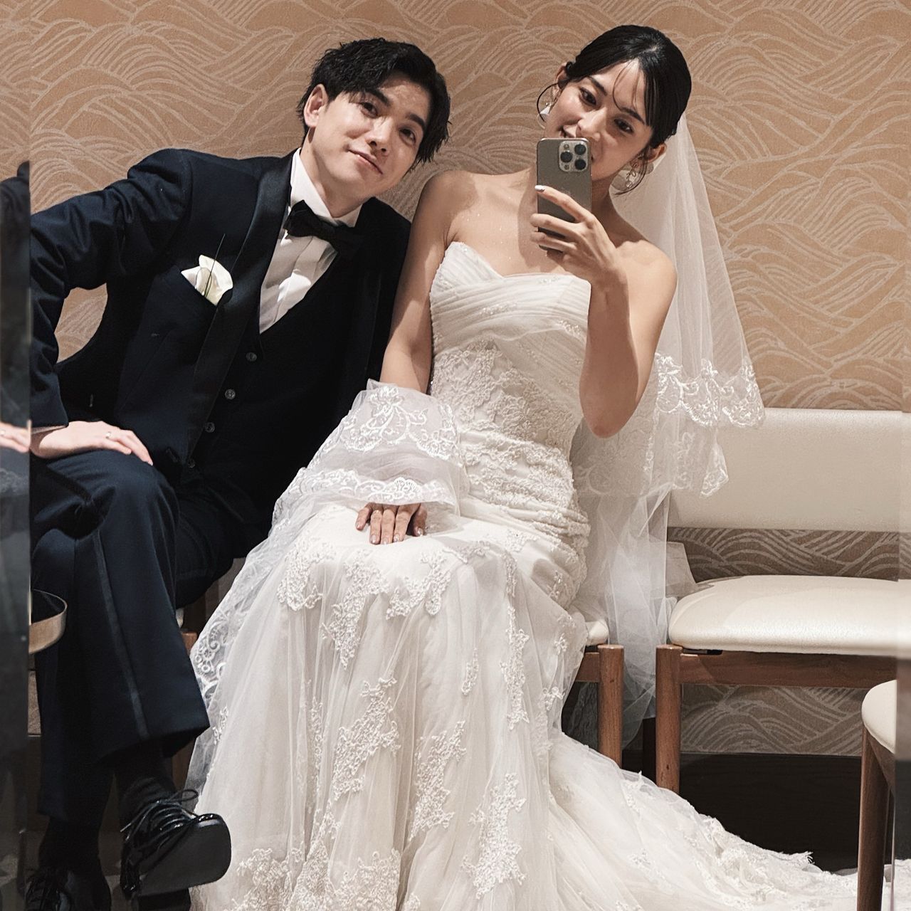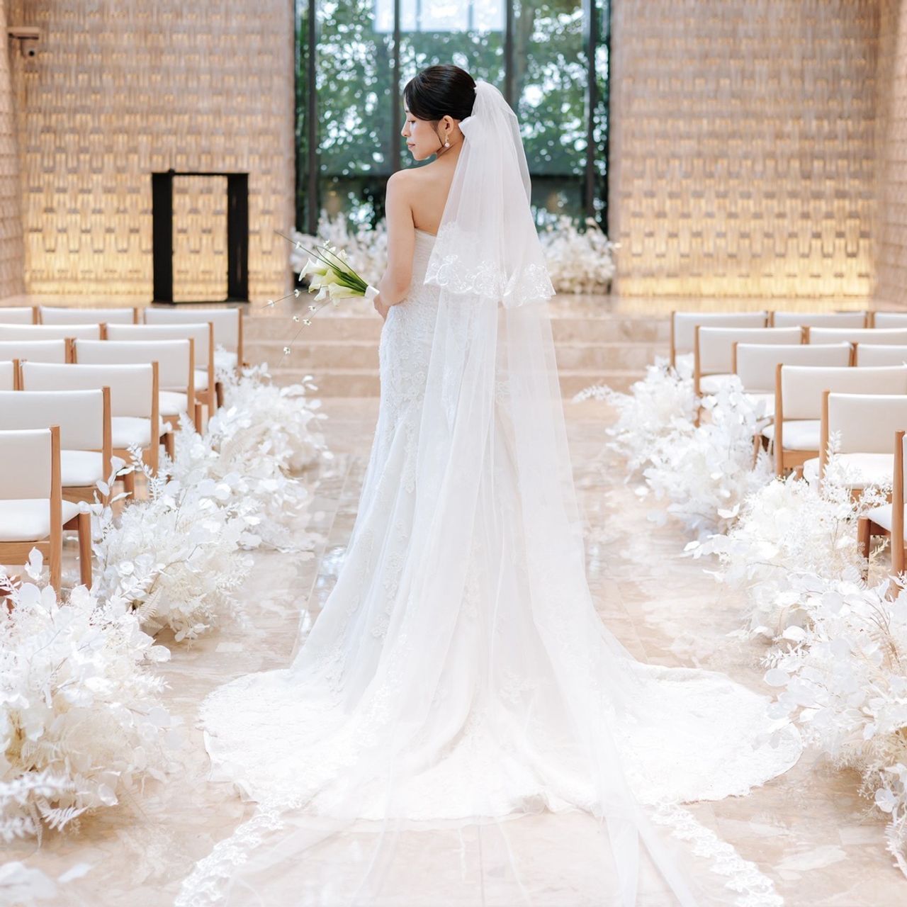 元々シンプルなマーメイドドレスとロングベールにしよう と心に決めており、費用内で探していたところ、形が綺麗だったため即決しました👗🫧