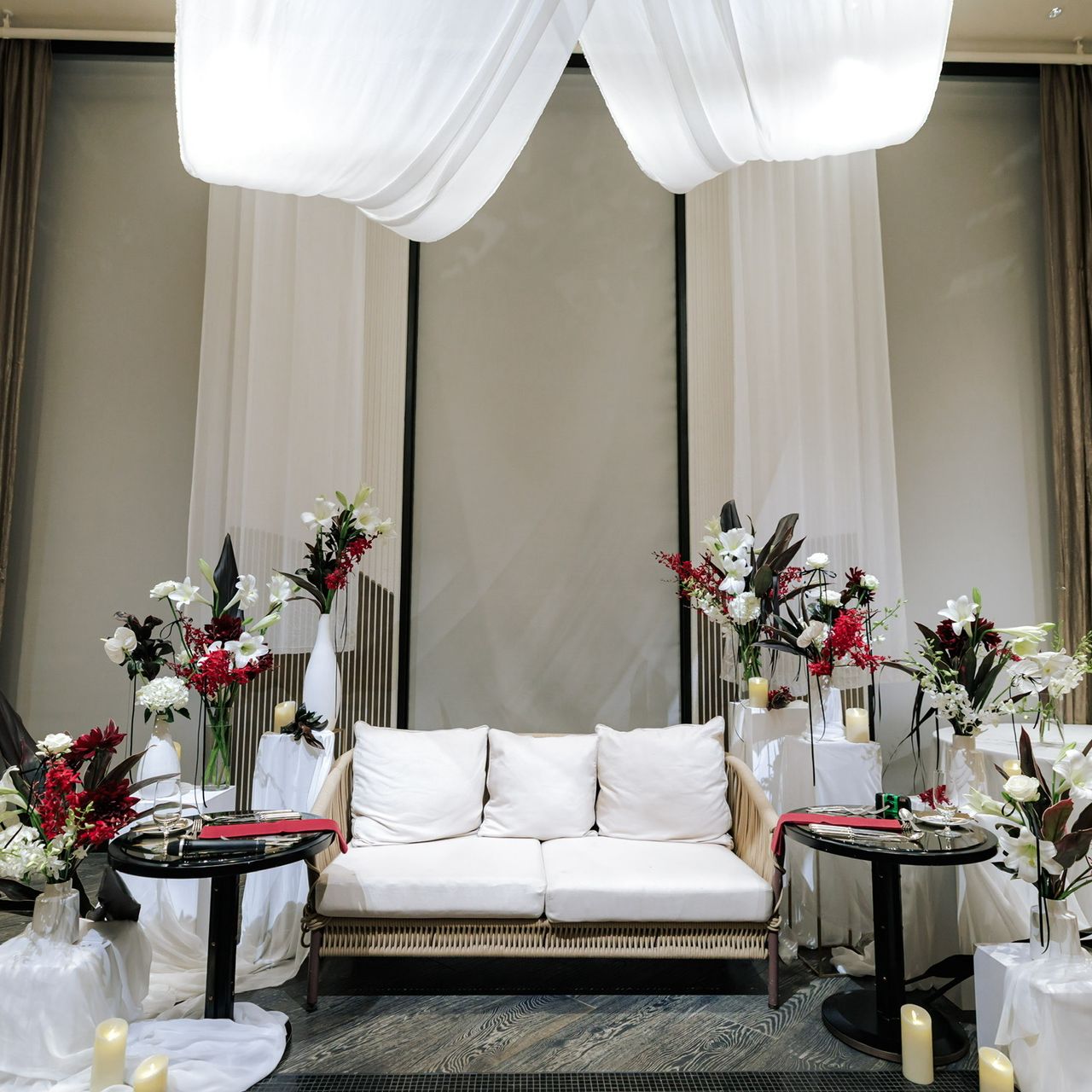 披露宴会場から待合も繋がっている変わった造りで、披露宴中にゲストが行き来できるのも好評でした🙌♡
