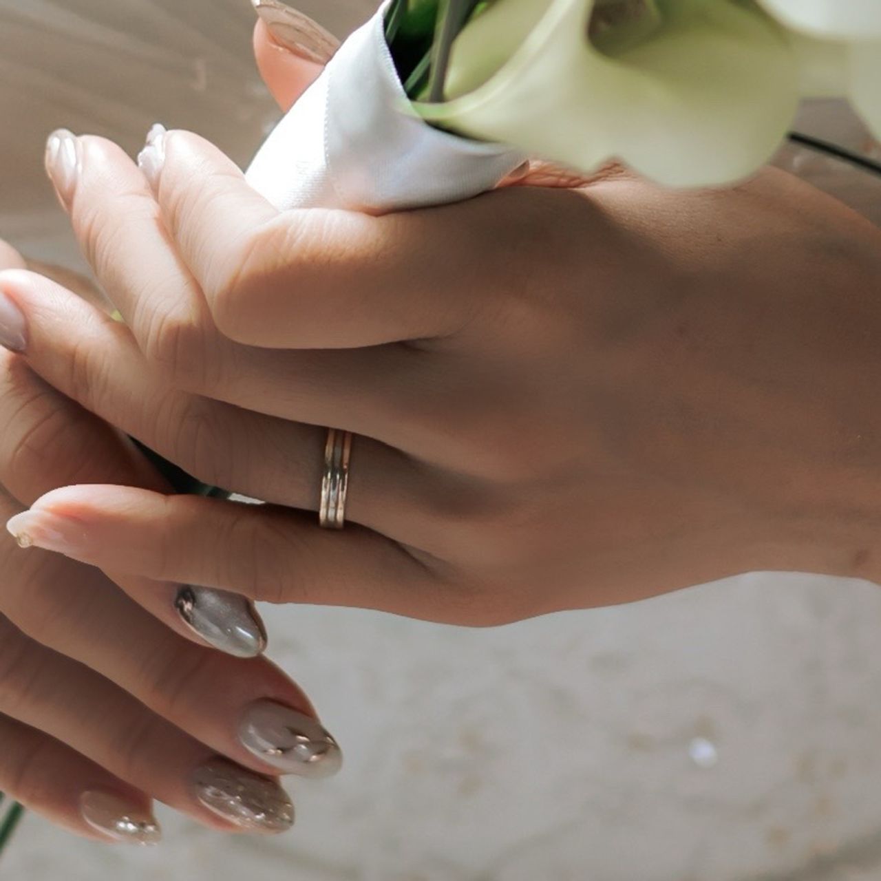 ピンクゴールド、イエローゴールド、ホワイトゴールドが三連になっているお気に入りの指輪です💍