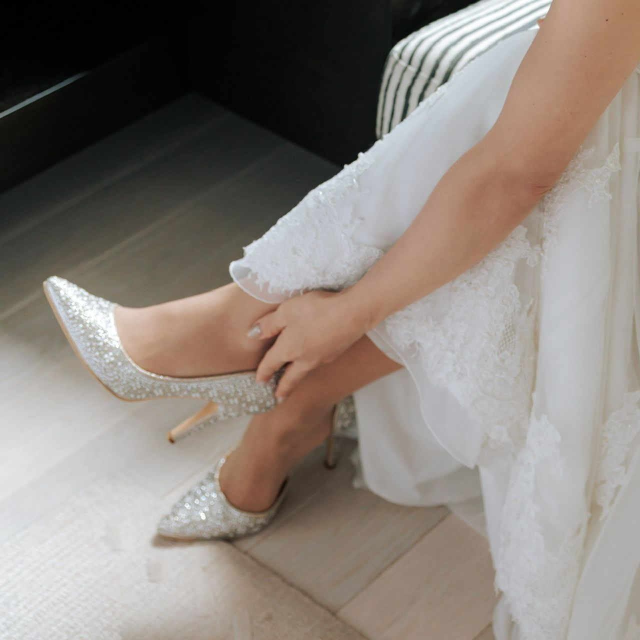 ビジューで全面キラキラしており、ドレスを邪魔しないようなシューズを選びました👠♡