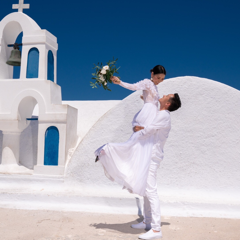 購入したので、新婚旅行先で後撮り出来る事も考えてた1着目とは全く違うイメージだけど、かっこよくしたくて、 甘くなりそうなドレスでしたが、 髪型や、ブーケで崩しました。