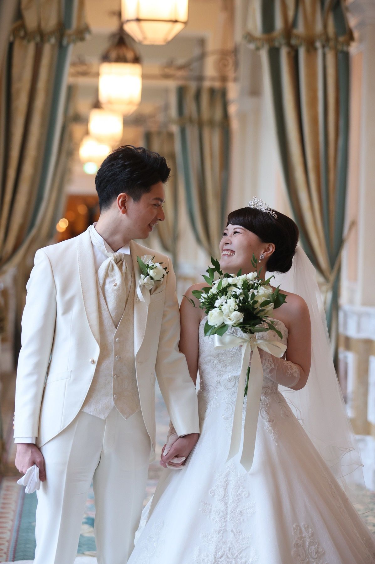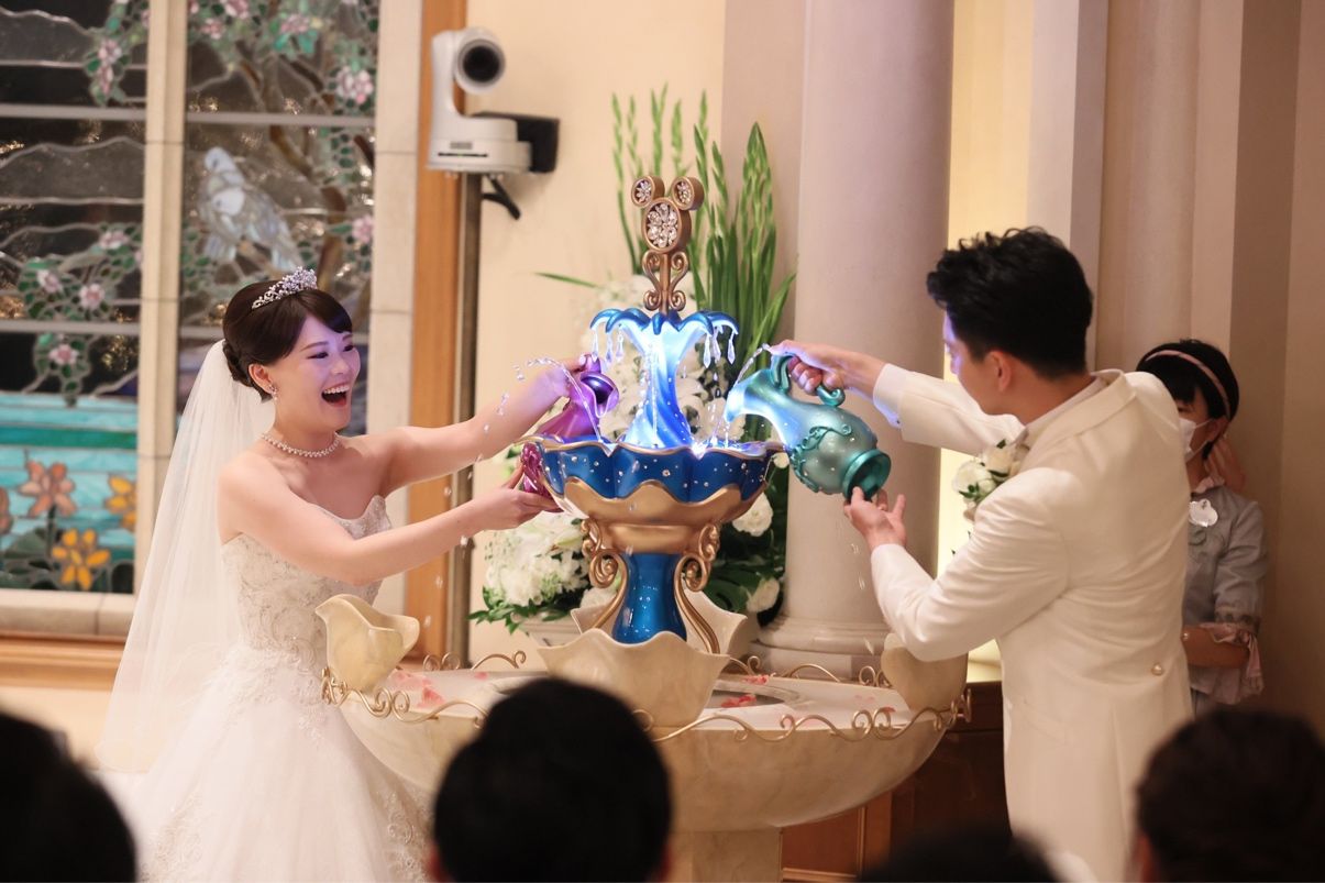 ミラコスタの人前式は特にユニークで、ゲストは挙式から楽しむことができます。穏やかな雰囲気のなかで形式ばらず、式を挙げることができました。