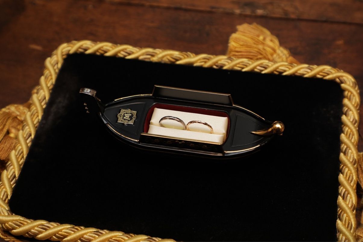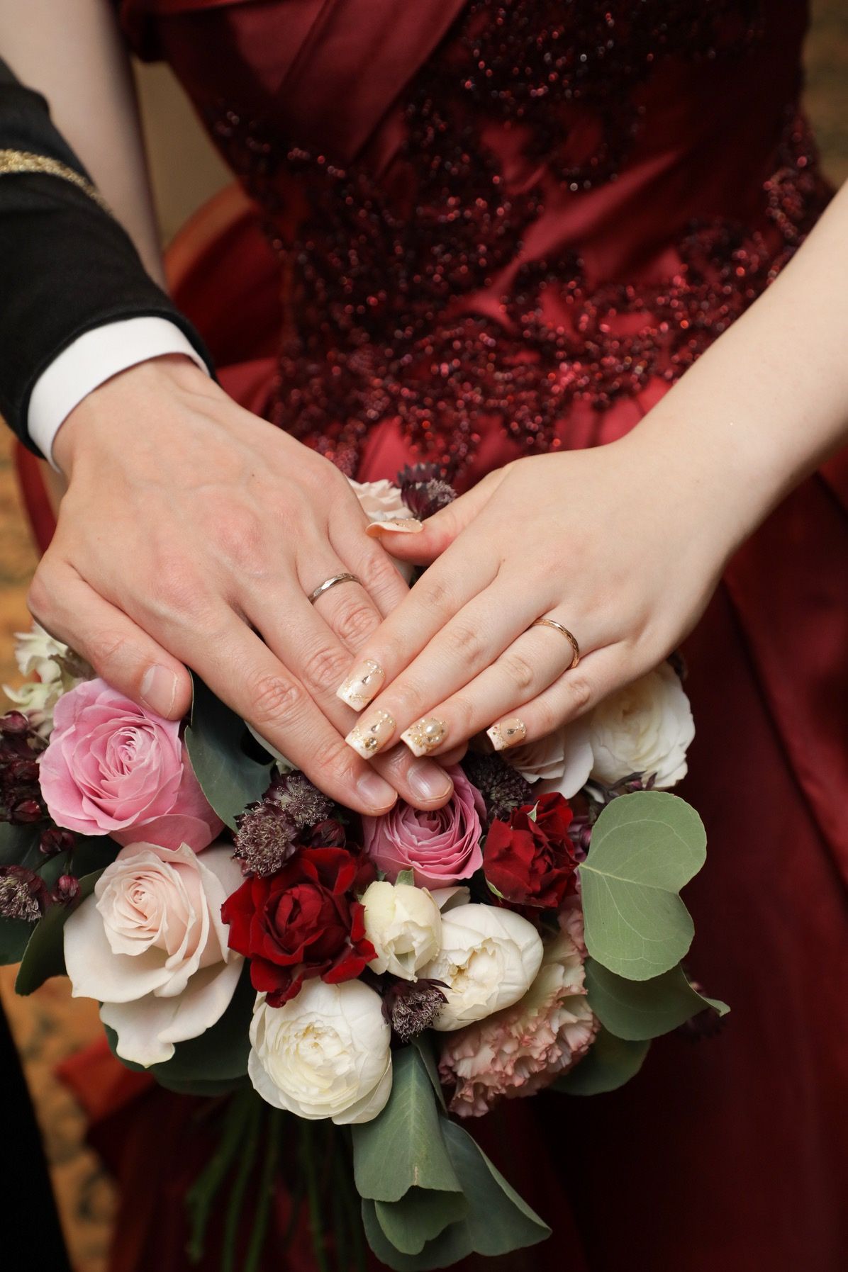 結婚指輪はLUCIEにしました。アンティークなデザインがとても気に入っています。新郎とは色違いにし、肌馴染みのいいプラチナゴールドにしました。