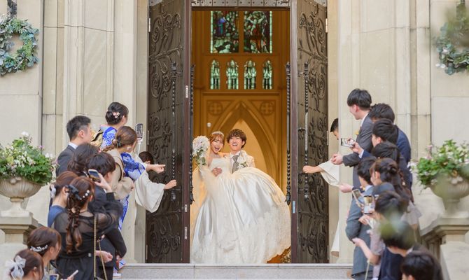 結婚式のテーマは「アンティーク×アットホーム」です。ゲストとの距離が近く、全員が楽しく過ごせる空間づくりを意識しました。元々アンティークな骨董品や絵画が好きなため自分の好みをぎゅっと詰め込んだコンセプトにしています。ハートコート横浜の美しいステンドグラスと披露宴会場のアンティークな家具や調度品が私のイメージとぴったりだったこと。また、比較的自由度の高い式にできる点が式場を選んだ決め手です。