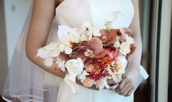 それぞれの国旗の基調が赤と緑であることから、レッド×グリーンと差し色にゴールドをテーマカラーにクリスマスの時期に結婚式をしようと決めていました!
