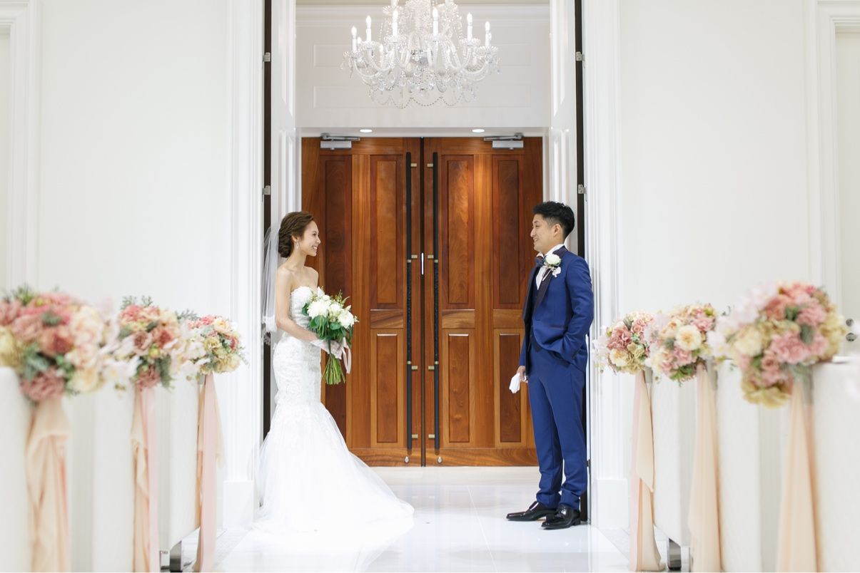 入場前にチャペルの扉にムービーが流せるところが素敵です。