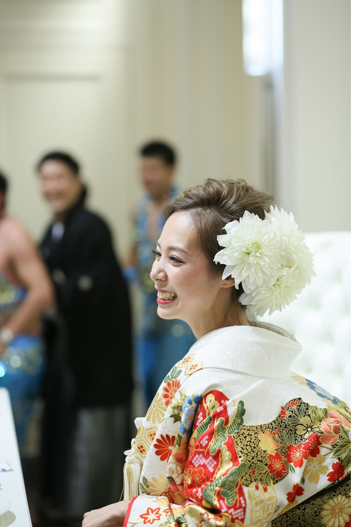 和装は絶対おっきい生花をつけたかったのでダリアを3つのせました。