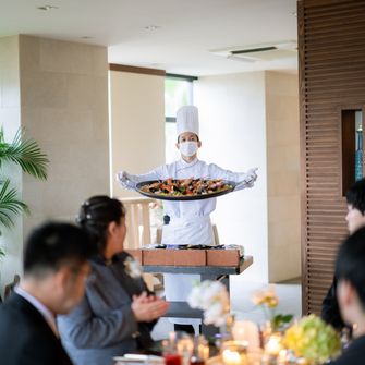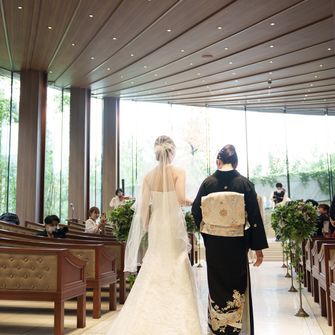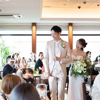 その中で少人数でもOKな会場を探していて、披露宴会場の狭すぎず広すぎない空間や窓から海が見えること、独立型のチャペルが探していた条件とピッタリでした。