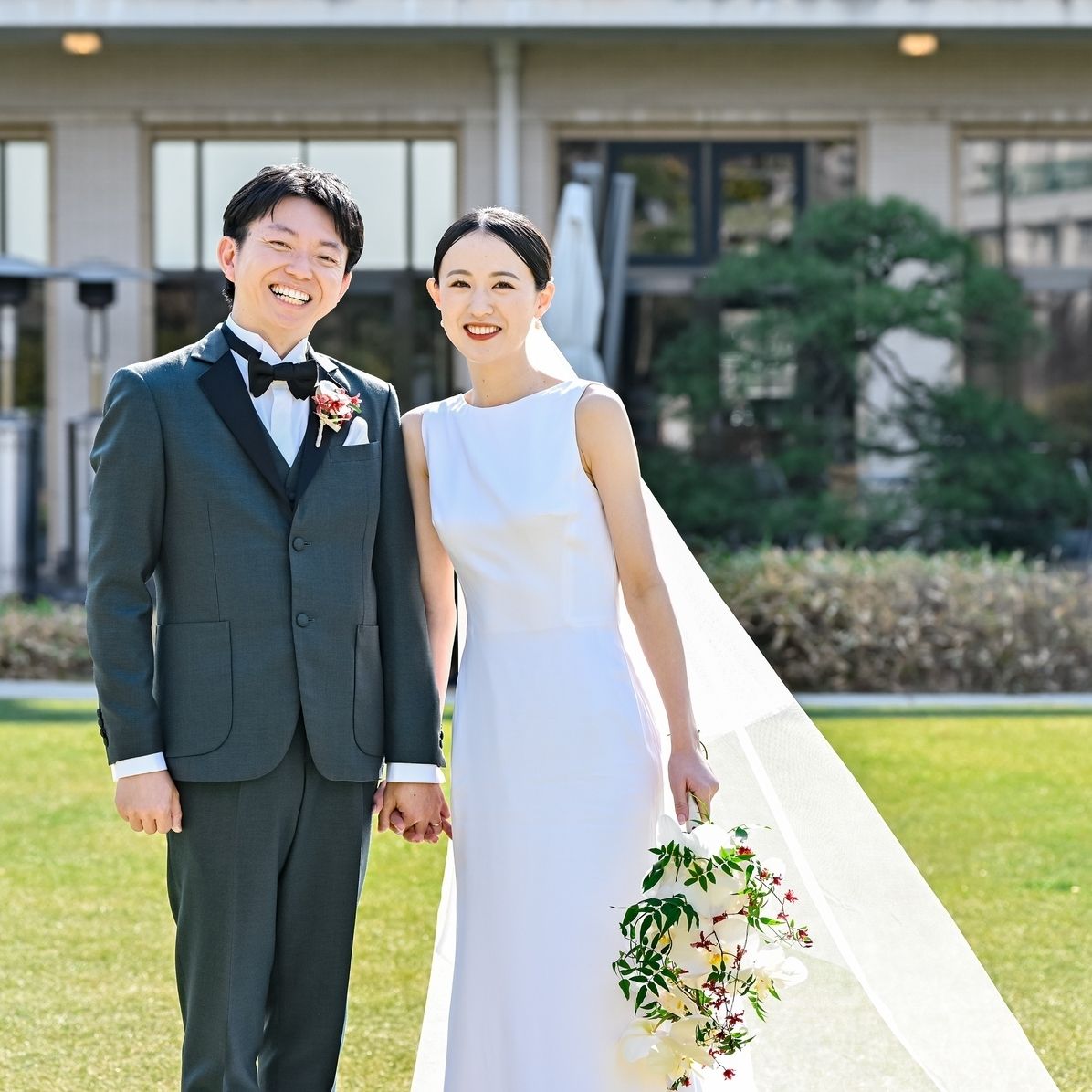 婚約当初はハンサムショートでかなり短かった髪を、1年3ヶ月かけてアップスタイルができる長さまで伸ばしました!