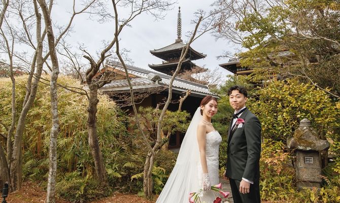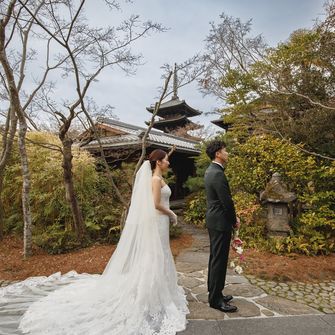 式場選びでは洋も和も譲れず、京都の日本らしさを大切にされていて、会場に入るとクラシカルな雰囲気もあり、両方の良いところ取りができるザ・ソウドウ東山京都(THE SODOH HIGASHIYAMA KYOTO)さん一択でした。また、京都出身の彼と私の祖父母のお墓がある東山での挙式を希望し、会場から東山ならではの八坂の塔が見えるのもマストな条件でした。