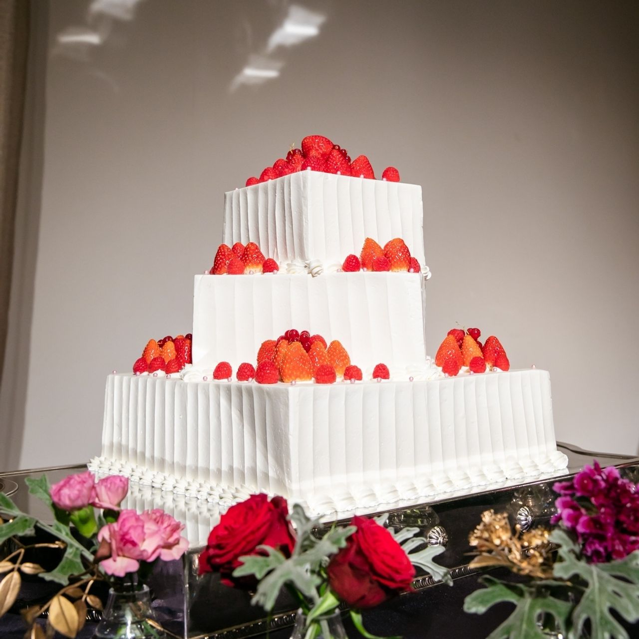 3段のいちご🍓とベリーの可愛いウェディングケーキにしました。