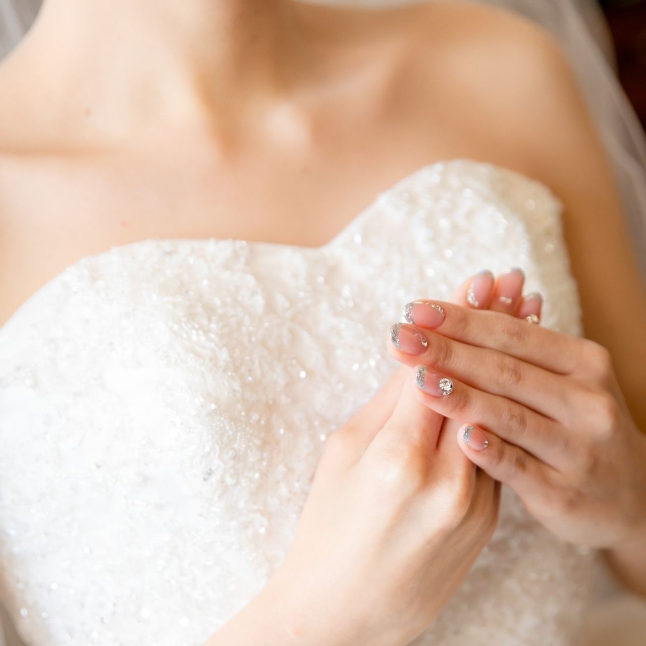 ウェディングドレスにもカラードレスにも合うピンクを基調としたデザインに、ダイヤモンド💎もつけてシンプル且つ目立つようにしました。
